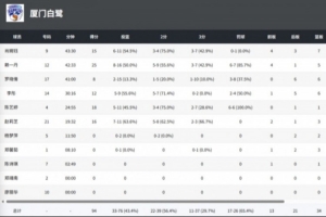 球员方面,全队共有赖一丹、陈艺婷、赵莉芝、肖婉钰和李彤五名球员得分上双,罗晓倩也有8分入账,可以说是靠着全队的多点开花获得胜利。