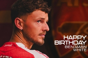 阿森纳官方社媒晒出本-怀特的生日海报,配文:“生日快乐,本-怀特。”