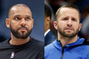 值得一提的是,掘金教练席有杜德利和巴里亚两位前NBA球员。