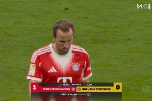 体育资讯10月19日讯 德甲第7轮拜仁vs多特半场结束,凯恩破门帮助拜仁1-0领先。