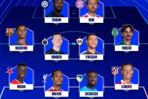 中场:拉什福德(巴萨)、瓦纳肯(布鲁日)、比卡略(卡拉巴赫)、特林康(葡萄牙体育)