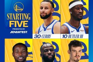 勇士最新先发:库里、巴特勒、库明加、追梦、波斯特。