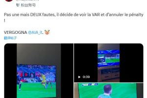 米兰球迷社媒发文怒斥判罚:“不是一次而是两次犯规,他决定查看VAR并取消点球!耻辱@AIA(意大利裁判协会)🤡。”莱奥社媒转发了该球迷评论。