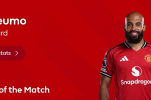本场比赛曼联前锋姆伯莫发挥出色,打进球队首粒进球,赛后他也当选英超官方球迷票选全场最佳球员。