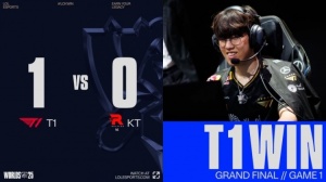 体育资讯11月9日讯 2025全球总决赛冠亚军决赛,由KT对阵T1!