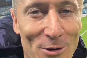 莱万赛后向球迷问好:“嗨,巴萨球迷们!大家好吗?我们非常开心,又拿到了3分。回头见!”
